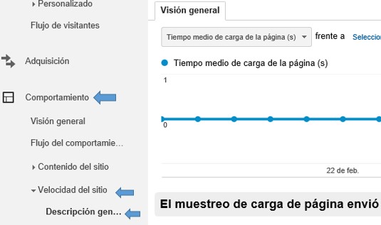 Establecer el comportamiento y tiempo de carga es más sencillo de lo que parece. La Herramienta de Google Analytics le permite ver qué pasa con su sitio cuando se muestra en diferentes dispositivos, ubicaciones y sistemas operacionales. Estando en su cuenta, de clic en “Comportamiento”, luego en “velocidad del sitio” y luego en “Visión General”.